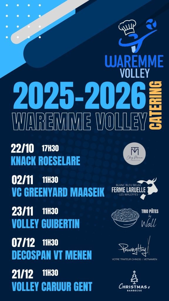 A cette occasion, nous vous proposons un walking-dinner d’avant-match préparé par « Chez Manon », un restaurant bien connu de Waremme. Après le succès de la saison passée, n’hésitez par à réserver votre place. Il n’y en aura pas pour tout le monde.
